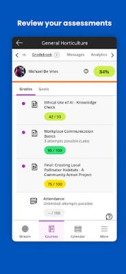 ارتقِ برحلتك التعليمية مع Blackboard، الرفيق الأكاديمي الشامل المصمم لربطك بعالمك الدراسي أينما كنت. بصفتك طالبًا، يضع Blackboard بين يديك كل ما تحتاجه لتظل في صدارة مسارك التعليمي. احصل على لمحة فورية عن آخر التعديلات والتحديثات التي تطرأ على مقرراتك الدراسية، ولا تفوت أي موعد نهائي مجددًا بفضل التنبيهات الفورية لمواعيد تسليم الواجبات والإعلانات الهامة. قم بإنجاز مهامك الدراسية بسهولة، من تسليم الواجبات والاختبارات عبر الإنترنت إلى تتبع تقدمك الأكاديمي خطوة بخطوة. استعرض درجاتك وتفاصيل أدائك للمقررات والواجبات والاختبارات بضغطة زر، واكتشف المزيد من الأدوات المبتكرة المصممة خصيصًا لتعزيز تجربتك التعليمية.