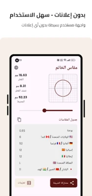مع تطبيق أداة قياس الخاتم بدقة في البيت، يمكنك تحديد مقاس خاتمك المثالي بسهولة وراحة من منزلك. استمتع بتجربة قياس دقيقة وموثوقة لكل مناسبة، لتجد المقاس الذي يناسبك تمامًا دون عناء.