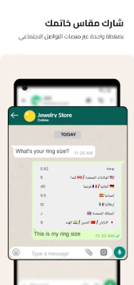 لمسة واحدة تفصلكم عن عالم من التوافق العالمي. يدعم Accurate Ring Sizer معايير قياس الخواتم الأكثر شيوعاً حول العالم، بما في ذلك المقاسات الأمريكية، الكندية، البريطانية، الأوروبية، اليابانية، والصينية، إلى جانب المرونة في عرض القياسات بالمليمتر أو البوصة. مع إرشادات بصرية واضحة خطوة بخطوة، يصبح قياس الخاتم عملية يسيرة وممتعة للجميع. وبعد الانتهاء، يمكنكم حفظ المقاسات أو مشاركتها فوراً عبر أجهزتكم، مما يجعل التسوق عبر الإنترنت أو التخطيط لهدايا مميزة أمراً غاية في السهولة والفعالية.