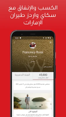 ولتعزيز قيمة كل رحلة، يقدم لكم تطبيق طيران الإمارات وصولاً فورياً وشاملاً إلى جميع مزايا سكاي واردز طيران الإمارات. استعرضوا بسهولة طرق كسب وإنفاق أميالكم، وتحققوا من فئة عضويتكم وامتيازاتها الحصرية، وراقبوا رصيد حسابكم في سكاي واردز في أي وقت ومن أي مكان. إدارة حسابكم أصبحت في متناول أيديكم، لضمان تحقيق أقصى استفادة من برامج الولاء التي تقدمها طيران الإمارات.