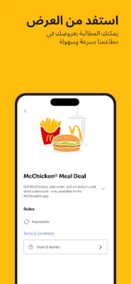 هل تتوق لتجربة ماكدونالدز لا مثيل لها؟ مع تطبيق ماكدونالدز، نضع عالم ماكدونالدز بين يديك، لنضمن لك تجربة متكاملة وممتعة في كل مرة. صُمم هذا التطبيق ليكون رفيقك الأمثل، ليقربك أكثر إلى كل ما تحبه في ماكدونالدز، بدءًا من أحدث المنتجات وصولًا إلى أسهل طريقة للعثور على أقرب مطاعمنا إليك، مما يجعل كل زيارة أو طلب أكثر سهولة ومتعة.