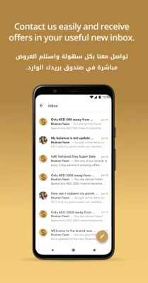 استمتع بمرونة وتحكم لا يضاهيان مع "شكرًا". يمكنك بسهولة تتبع جميع إيصالاتك ومعاملاتك السابقة، مما يمنحك رؤية واضحة لإدارة إنفاقك. كما يتيح لك صندوق الوارد المخصص لدينا التواصل المباشر مع فريق "شكرًا" لتقديم الملاحظات والاستفسارات، وتلقي أحدث التحديثات والعروض الجذابة. ولتعزيز تجربتك، يمنحك قسم "حسابي" التحكم الكامل في كيفية تواصلنا معك، سواء عبر البريد الإلكتروني أو الرسائل النصية أو الإشعارات، مما يضمن أنك تتلقى المعلومات التي تهمك بالطريقة التي تفضلها.