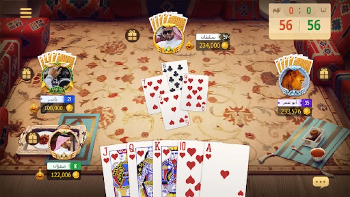 في تربيعة بلوت، تتجلى المتعة في التنافسية العادلة والواقعية بنسبة 100%، حيث يمكنكم الانخراط في جولات لعب آسرة مع الأصدقاء أو تحدي لاعبين جدد من مختلف المستويات – سواء كنتم مبتدئين تبحثون عن التعلم، متقدمين تسعون لصقل مهاراتكم، أو محترفين تهدفون إلى إثبات براعتكم. لا تقتصر التجربة على اللعب فحسب؛ بل تمتد لتشمل تكوين صداقات جديدة، والتواصل عبر الدردشة الحيوية، وتبادل الهدايا والعبارات التحفيزية التي تضيف بُعدًا اجتماعيًا مميزًا لكل جولة.